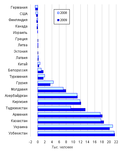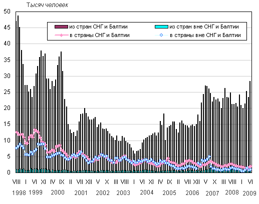 месяцев 2009 года в страны СНГ и Балтии выехало из России 9,8 тысячи