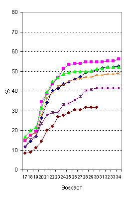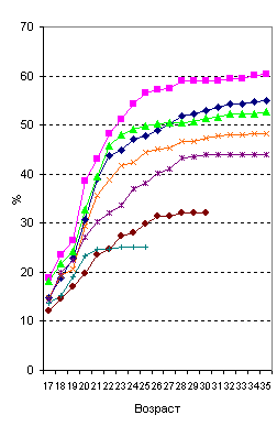 годов рождения), она упала вдвое: к 25 годам совершили первый переезд