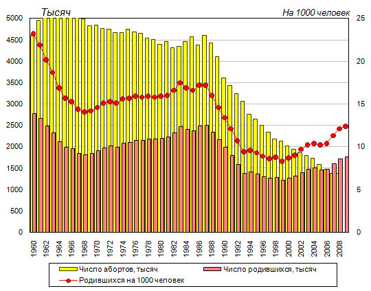 100 родов), в 2008 году - 1714 и 1386 тысяч (81 аборт на 100 родов).