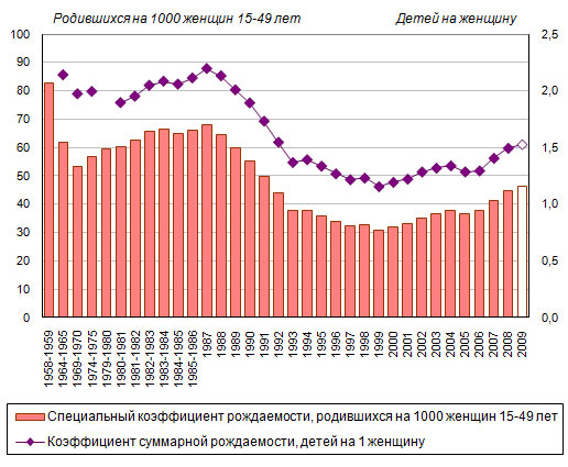 Росстата - "суммарный коэффициент рождаемости") показывает,