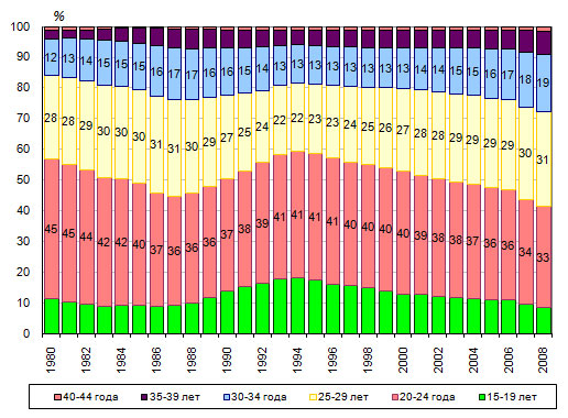 от 20 до 29 лет. В начале 1980-х годов эта доля достигала почти