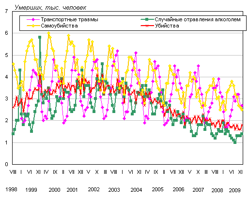 алкоголем, быстро снижавшаяся также в 2006-2007 годах. Самое высокое
