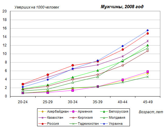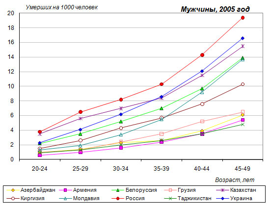 0,2‰ в Армении до 1,1‰ в Казахстане. Смертность мужчин в возрасте