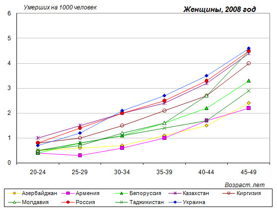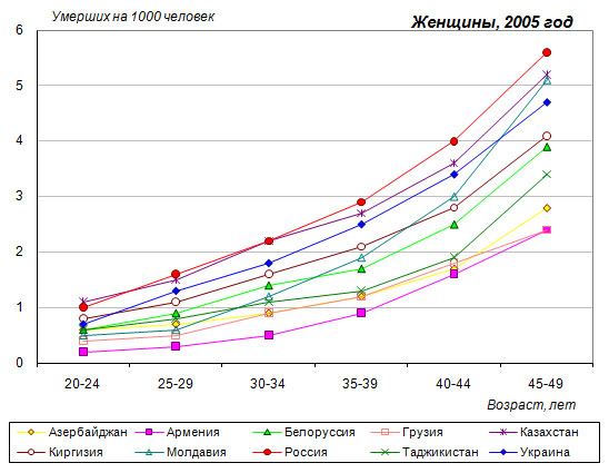 женщин того же возраста - от 2,4‰ в Армении и Грузии до 5,6‰ в России.