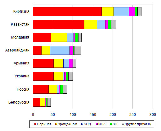 расчете на 1000 рожденных живыми в Белоруссии до 60 в Таджикистане2.