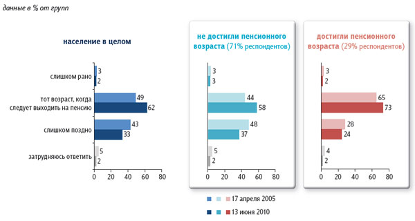 приемлемый возраст для выхода на пенсию»; «именно тот возраст,