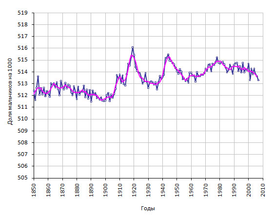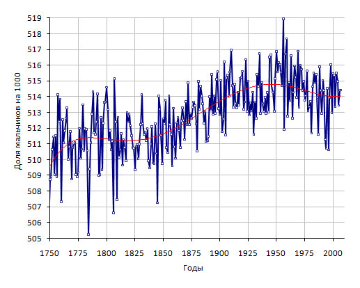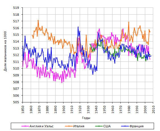 времени во всех странах. Достаточно взглянуть на долю мальчиков