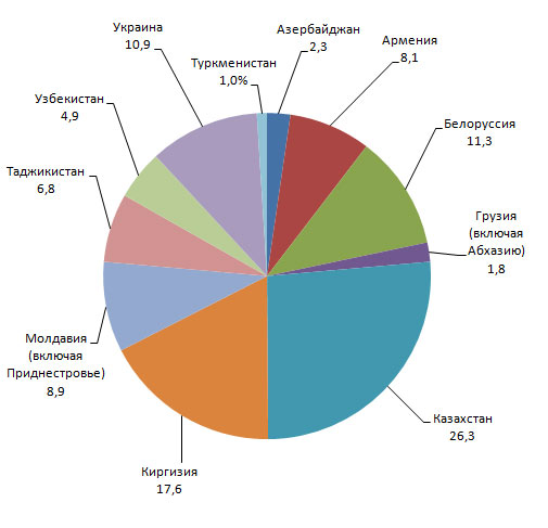 Рисунок 14. Доля граждан различных стран СНГ, обучавшихся