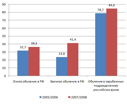 дневных и заочных отделениях российских вузов и в их зарубежных
