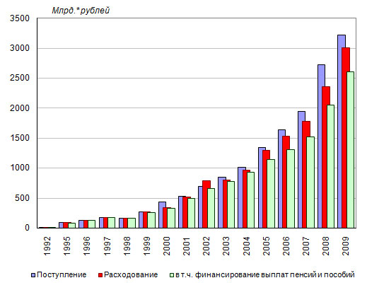 фонда Российской Федерации, 1992-2009 годы, млрд.* рублей