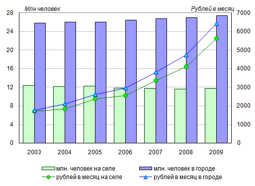на селе (рис. 20). В 2009 году он составил 6421 против 5610 рублей