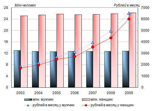 составил у женщин 6010,4 рубля, что на 8,5% ниже, чем у мужчин (6518,5