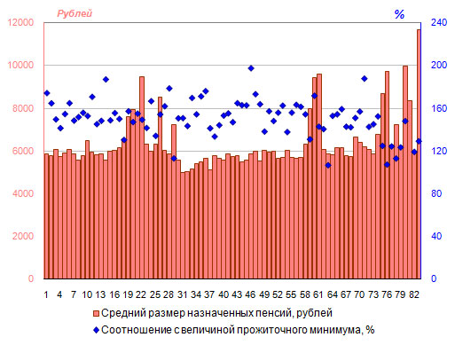средний размер назначенных пенсий заметно выше, чем в других регионах-субъектах