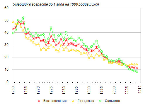 Умеренное снижение младенческой смертности в 2000-2009