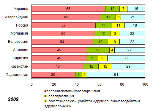 до 14% в Казахстане и России, что превышало долю умерших от новообразований.