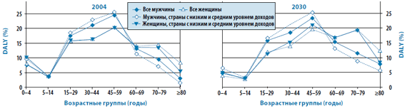старшего возраста – в общей сложности 58%. И наоборот, потеря DALY