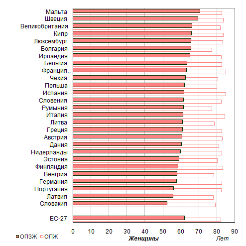 при рождении в ЕС-27 составила 62 года для женщин и 61 год для мужчин