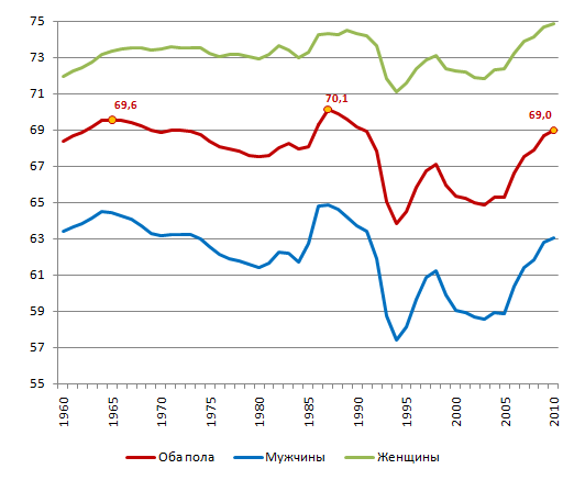 России в 1960-2010 годах, лет