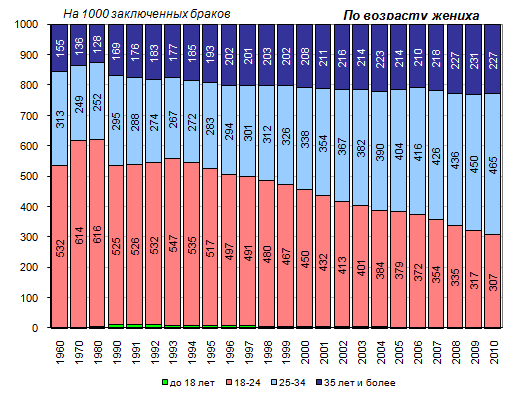в регистрируемые браки, за которым может стоять как повышение возраста