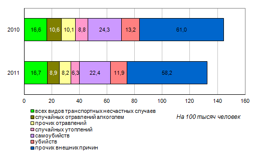 Несмотря на снижение смертности от внешних причин, ее