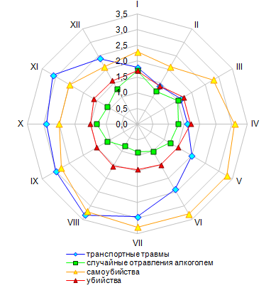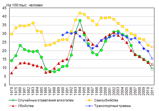 года (рис. 11 и 12), смертность от случайных отравлений алкоголем