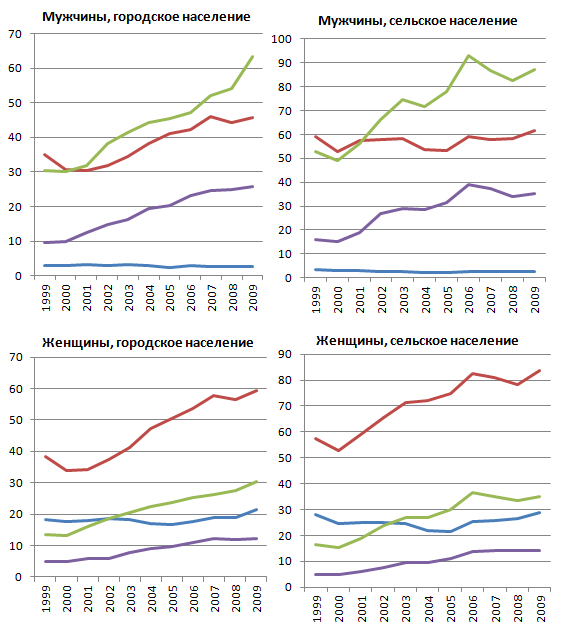 городского и сельского населения (на 1000 человек данной возрастно-половой