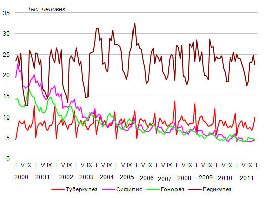 за 2011 год, число заболевших этими болезнями продолжало снижаться: