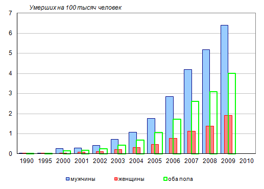 полами сократились, составив в 2009 году 3,4 раза (6,4 умерших на