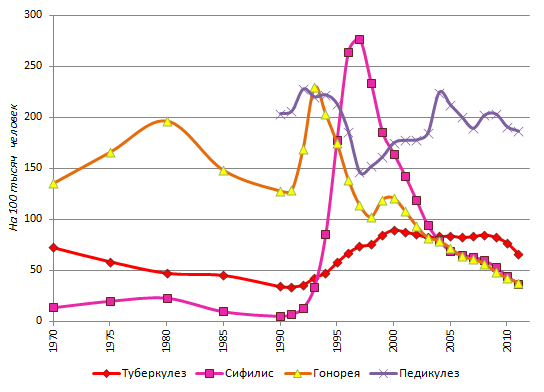 туберкулезом повысился до 85 на 100 тысяч человек, а затем стал