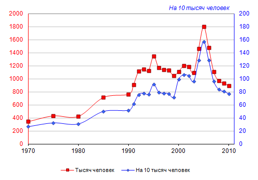 (26,6 тысячи человек в 2010 году). Это меньше, чем было зарегистрировано