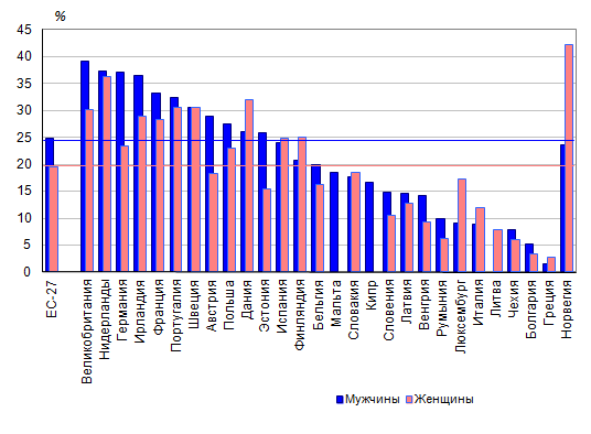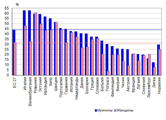 В целом по ЕС-27 доля таких ответов составила 31,6%, а у мужчин