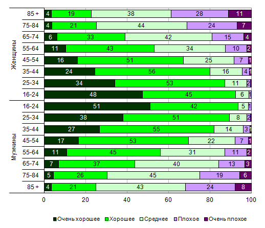 (нормальное), плохое, очень плохое. По данным 2010 года, свое здоровье