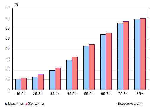 25% мужчин и 31% женщин, в возрасте 85 лет и старше – 32% и 39%.