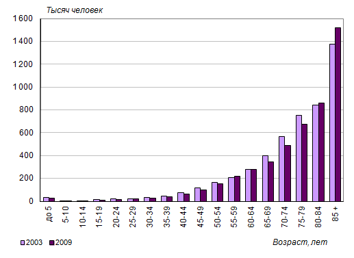 - в возрасте 65 лет и старше. Если сравнивать с 2003 годом, в 2009