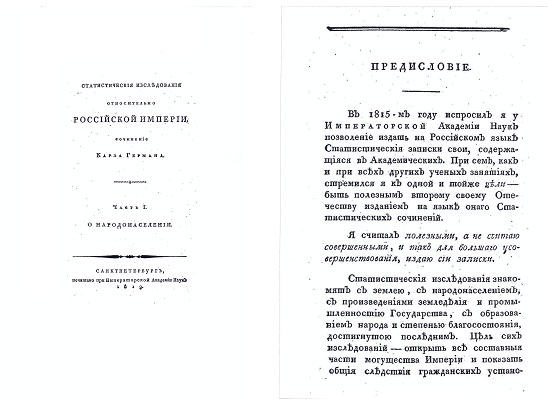 исследования относительно Российской империи" (Ч. 1 - О народонаселении.