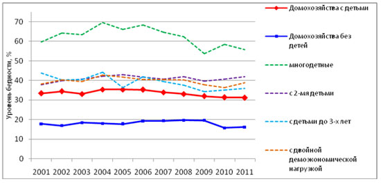 себя бедным, возросла за период 2008-2011 годов с 53,1 до 60,0%.