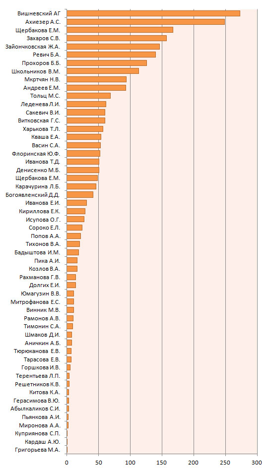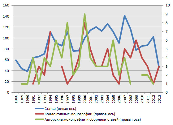 ГУ-ВШЭ по годам за 1988-2013 годы (учтены только публикации за время