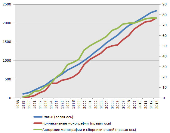 ИНП РАН или ИДЕМ НИУ ВШЭ по годам за 1988-2013 годы (учтены только