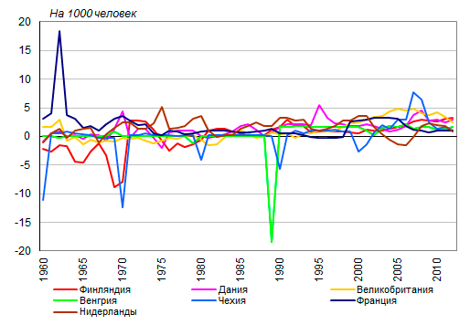 годов. В Нидерландах миграционная убыль населения была зафиксирована