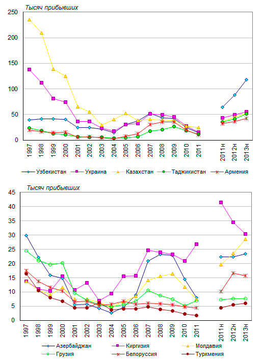 тысячи человек). Число иммигрантов из любой другой страны СНГ не