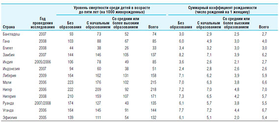 рождаемости, связанная с образованием, в странах Африки к югу от