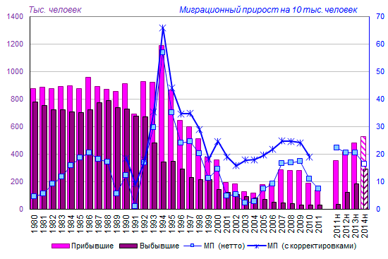 (Росстатом), миграционный прирост в январе-июне 2014 года полностью