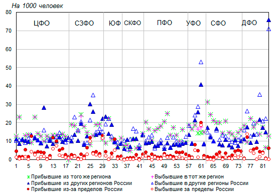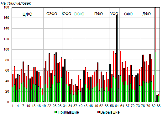 тысячи человек). В остальные регионы-субъекты федерации прибыло