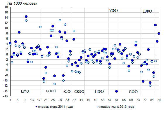 включая автономные округа, понесла в январе-июле 2014 года миграционные