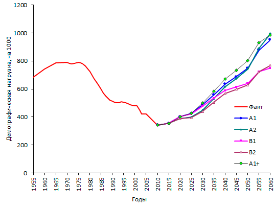 нагрузки в 2060 году соответствует сценарию A2, повышение рождаемости
