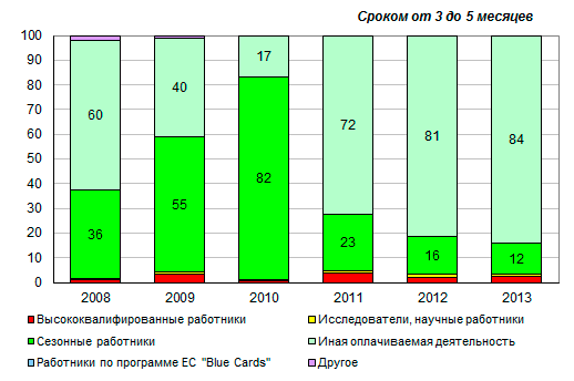 на работу в ЕС-28, сезонных работников, практически нет, а доля