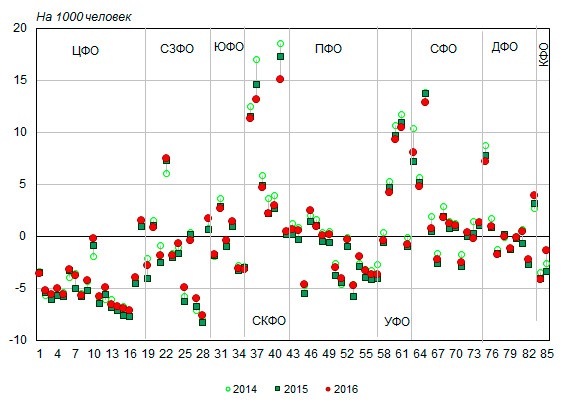 в пересчете на год). В Северо-Кавказском федеральном округе миграционная