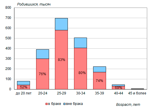 от 20 до 35 лет, на которые приходится основная часть рождений,