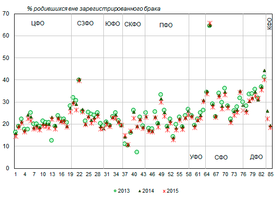 вне зарегистрированного брака составляла от 10,8% в Кабардино-Балкарской