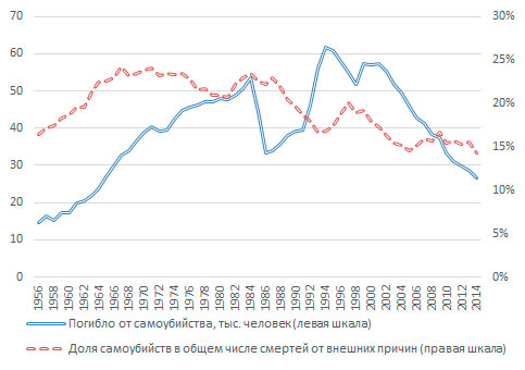 в России регистрируется даже меньшее число самоубийств, чем в 1986